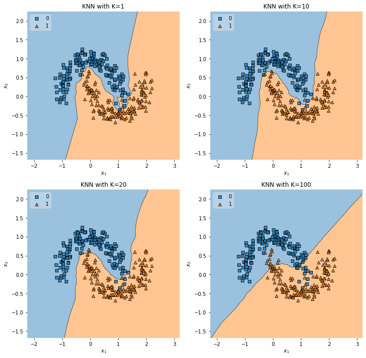 $k$가 너무 작을 경우, 데이터의 지역적 특성을 지나치게 반영하여 과적합이 발생하고, 너무 크게 잡으면, 모델이 과하게 관대해져, 언더피팅이 발생한다.