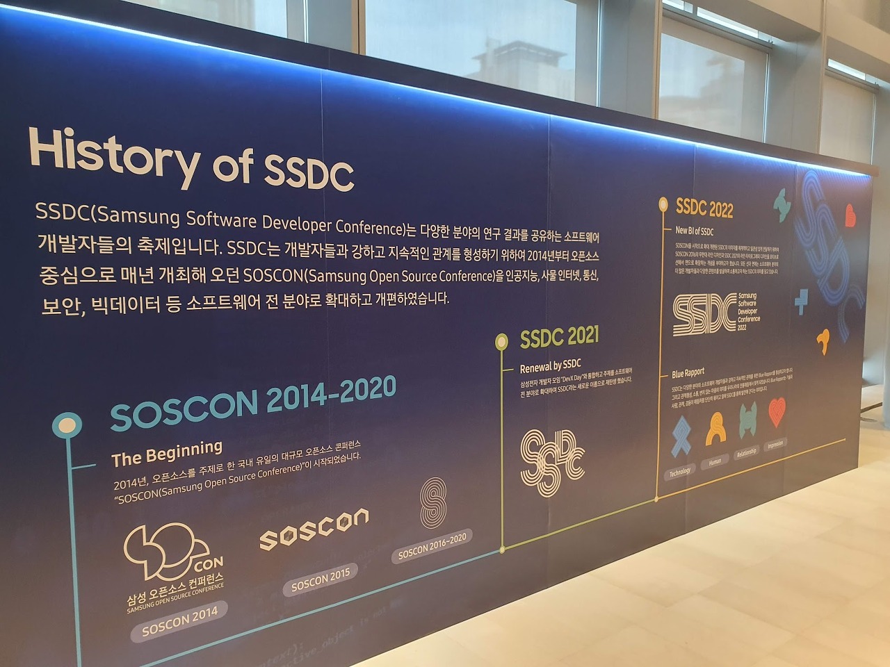 인스타 이벤트 참여 후 행사장을 둘러보니 기존 삼성 오픈소스 컨퍼런스(SOSCON)로 진행되었던 SSDC의 역사를 소개하는 패널을 볼 수 있었다.