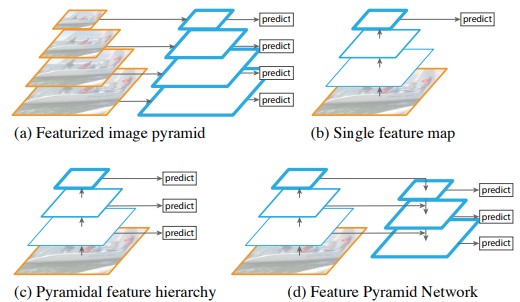 Object Detection에서, Feature Pyramid는 다양한 크기의 물체들을 탐지하기 위한 주효한 방법 중 하나이지만, 많은 (당시) 최근 모델들이 다양한 scale의 feature map들을 만드는 데 컴퓨팅 성능이 너무 많이 요구되기에 feature pyramid를 만드는 접근을 피해왔다.