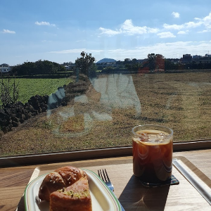 제주도는 어느 위치든 대충 통창을 뚫어놓으면 그림이 된다. (이 빵집이 창을 대충 뚫어놓았다는 건 아니고..)