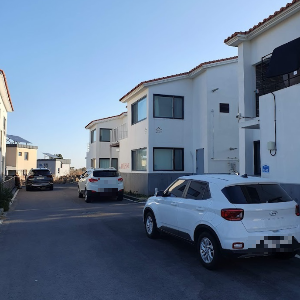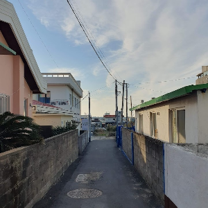 큰 길가로 나오니 제주도스러운 돌담들과 건물들, 그리고 저 멀리 바다가 눈앞에 펼쳐졌다.