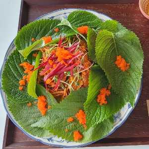 그리고 마침내, 깻잎에 회무침을 듬뿍 올려 한입 싸 먹었다.