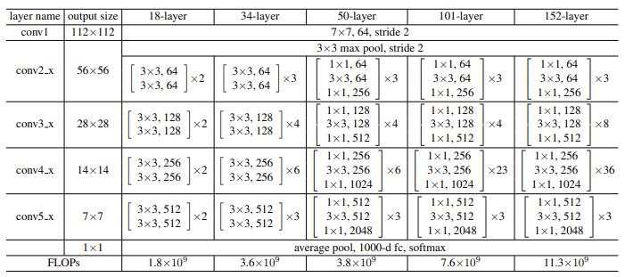 저자들은 ResNet-34에 위에서 설명한 bottleneck 구조를 적용하고, 차원 변경에는 B 방법(Projection Matrix 사용)을 사용하여 50개의 계층을 갖는 ResNet-50을 구성했다. 이 모델은 38억 FLOPs의 연산량을 갖는다.