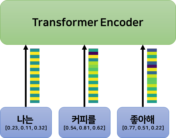- 만약 첫 번째 단어를 $1$이라는 값으로 인코딩하고, 열한 번째 단어도 $1$이라는 값으로 인코딩하면 첫번째 단어와 열한번째 단어가 같은 단어일 경우 완전히 같은 뜻으로 인코딩 될 것이다.