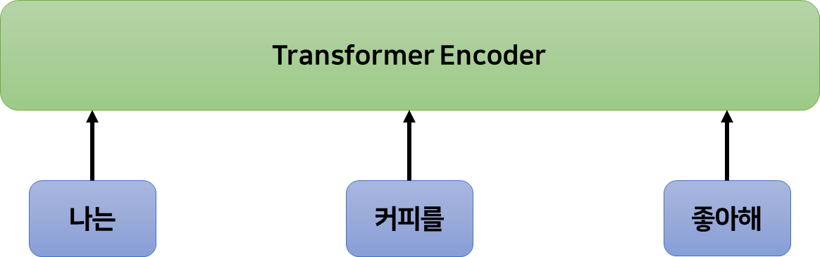예를 들어, "나는 커피를 좋아해"는 ["나는", "커피를", "좋아해"]로 토큰화할 수 있으며, 각 토큰은 다시 어떤 임베딩 벡터 $e_i \in \mathbb{R}^E$ ($E$는 임베딩 벡터의 차원, 논문에서는 512이다.)로 변환되어, $[e_0, e_1, e_2]$와 같이 임베딩 된다.