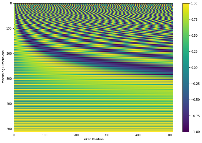 가로축이 토큰의 위치를 나타낸다. 즉, 0번째 단어는 위 그림에서 0번째 열에 해당하는 벡터를 더해준다.