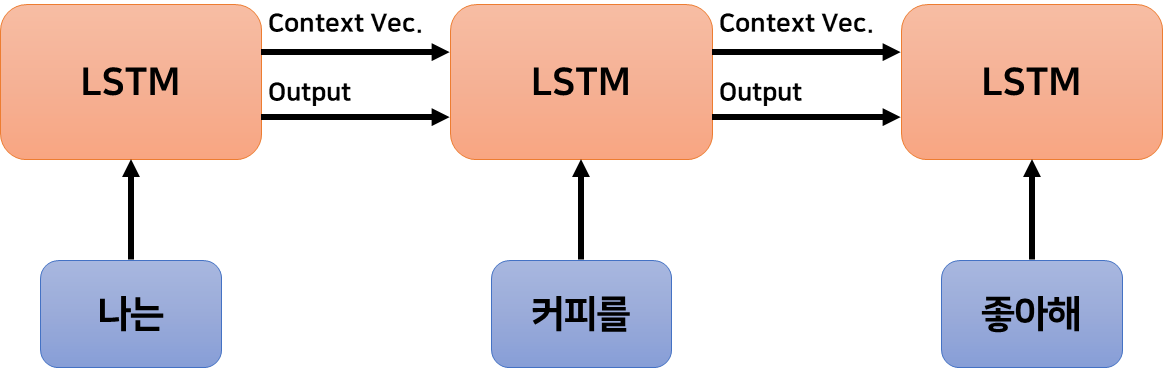 트랜스포머 이전의 자연어 처리 연구는 순환 신경망 구조를 활용하는 연구가 주류였다. 트랜스포머 이전의 SOTA 모델이자 RNN 기반 모델인 LSTM은 자연어 데이터를 단어 단위로 나누어 순차적으로 입력받는다. 각 단어가 입력될 때마다 문맥 벡터(context vector)에 문맥 정보를 신중하게 압축하여 저장한다.