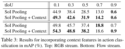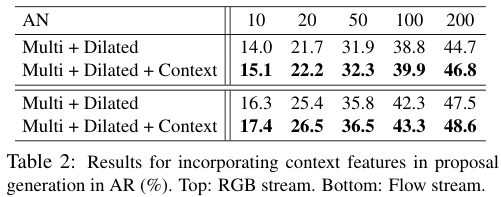 저자들은 실험(표 2)을 통해, proposal 생성 단계에서의 context feature extraction의 효과를 확인했다. 그 결과 context 정보를 더해주는 것이 성능을 향상하였다.