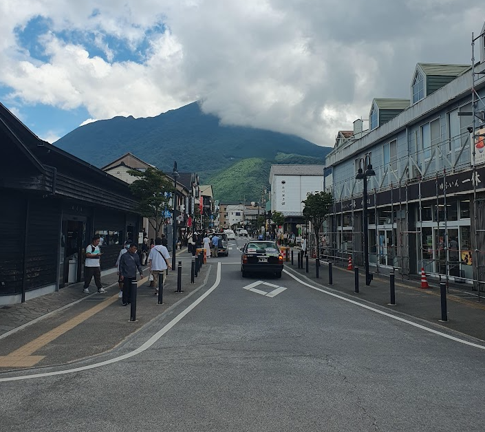 유후인에 오기로 했지만 버스와 숙소를 제외하고는 아무것도 조사하지 않고 왔다. 이제 그야말로 모험 시작인 것이다. 대충 둘러보니, 유후인 역에서 사진에 보이는 멋들어진 산을 향해 큰길을 따라 번화가가 있는 동네인 것 같았다.