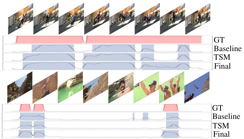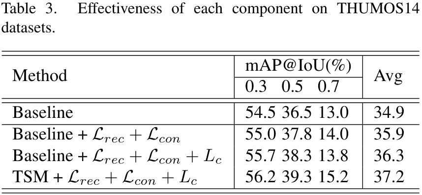 이를 통해 THUMOS14와 ActivityNet1.3에서 SOTA를 달성할 수 있었으나, 저자들은 결론에서 이 모델이 TSM과 VLC를 수행하는 각 브랜치를 같이 학습시켜야 하기에 모델 크기가 두 배가량 커지는 한계를 밝히고 있습니다.