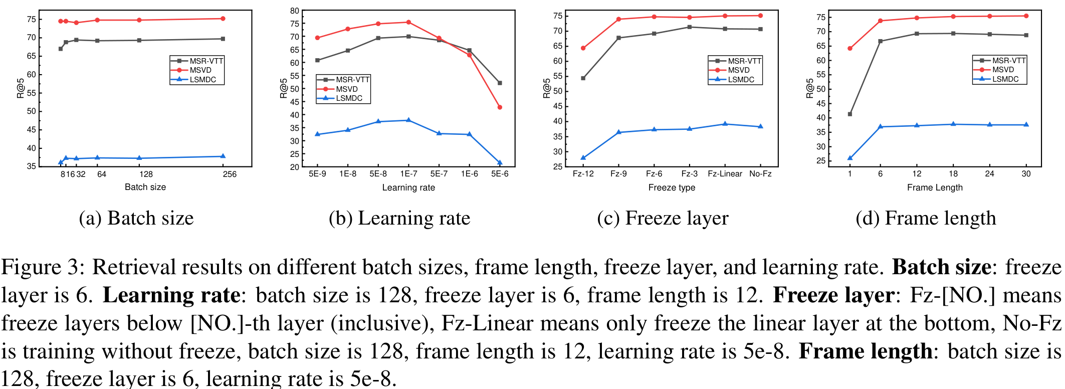 - Video-text retrieval task에서 CLIP이 learning rate sensitive 하다.