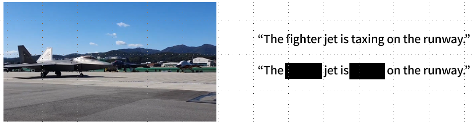 Semantic text masking strategy. 텍스트에 포함된 디테일한 맥락 정보는 대체로 동사와 명사에 존재합니다. 이러한 representation을 잘 학습하도록 하기 위해, 저자들은 동사와 명사, 형용사를 랜덤하게 마스킹하였습니다. 구체적으로, part-of-speech tagger를 통해 각 단어를 태그 하고, 동사구와 명사들을 선정하여 30%를 [MASK] 토큰으로 대체하였다고 합니다. 단, 의미가 너무 크게 변화하는 것을 막기 위해, have, should, will, would와 같은 일부 동사들은 마스킹하지 않았다고 합니다. 마스킹을 통해 텍스트는 디테일한 정보가 아닌 부분적인 정보를 가지게 됩니다.