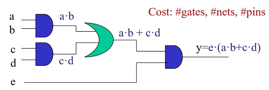 각 게이트는 3개의 핀(입출력)을 갖는다. 게이트를 이용한 위 논리 회로에는 총 9개의 signal net과 12개의 핀, 4개의 게이트가 활용되었다.