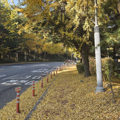 3년이 지나고 찾은 계룡대는, 바닥에 소복히 쌓인 은행잎과 아직 떨어지지 않은 은행잎, 그리고 몇 그루 상록수들이 섞여서, 3년 전 그날과 약간 다른 색, 다른 소리로, 하지만 여전히, 반짝이고 있었다.