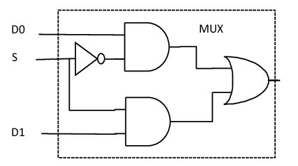 MUX의 구현은 위와 같이, Selector 신호와 입력의 AND 게이트와 OR 게이트로 구현할 수 있다.