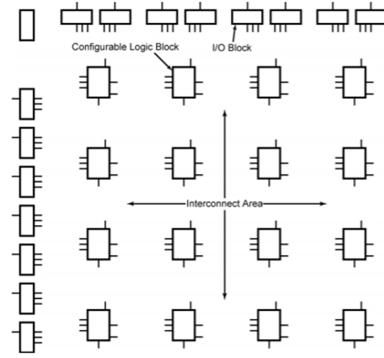 Logic Cell간의 상호연결 또한 프로그램 가능하고, 이 CLB들은 I/O 블럭으로 둘러싸인 구조를 갖는다.