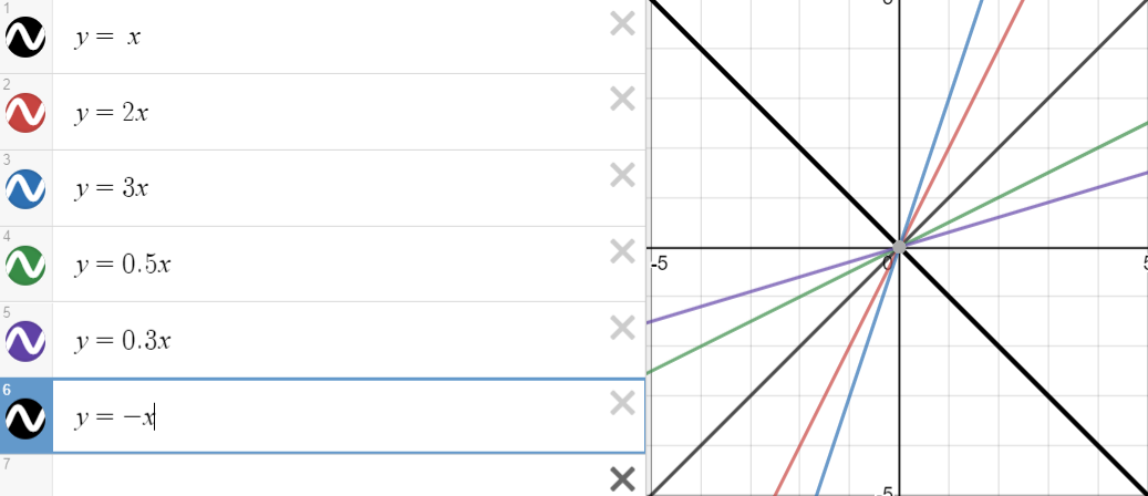 이번에는 b는 0으로 고정해두고 x에 곱해주는 수 a를 바꿔보자.