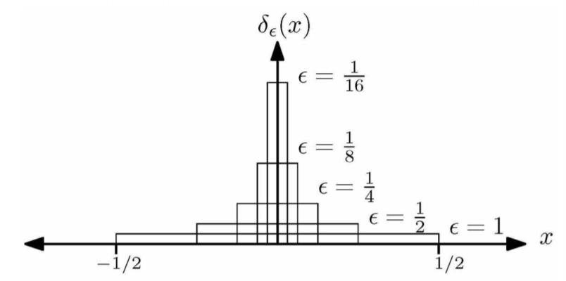 $$ d_\epsilon (x) = \begin{align*} \begin{cases} \frac{1}{\epsilon } &-\frac{\epsilon }{2} \leq x \leq \frac{\epsilon }{2} \\