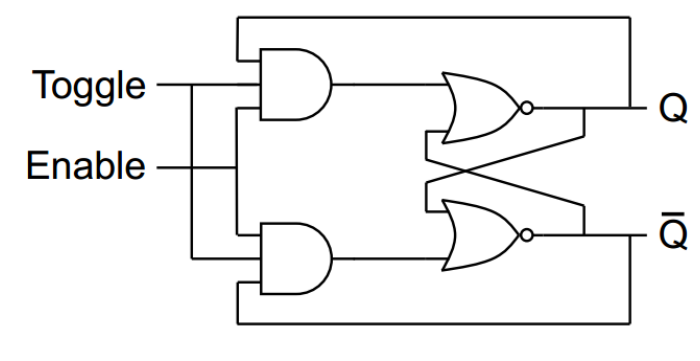 토글 기능만을 사용할 수 있는 FF. CLK 타이밍에 T가 1이면 저장된 값이 토글된다.